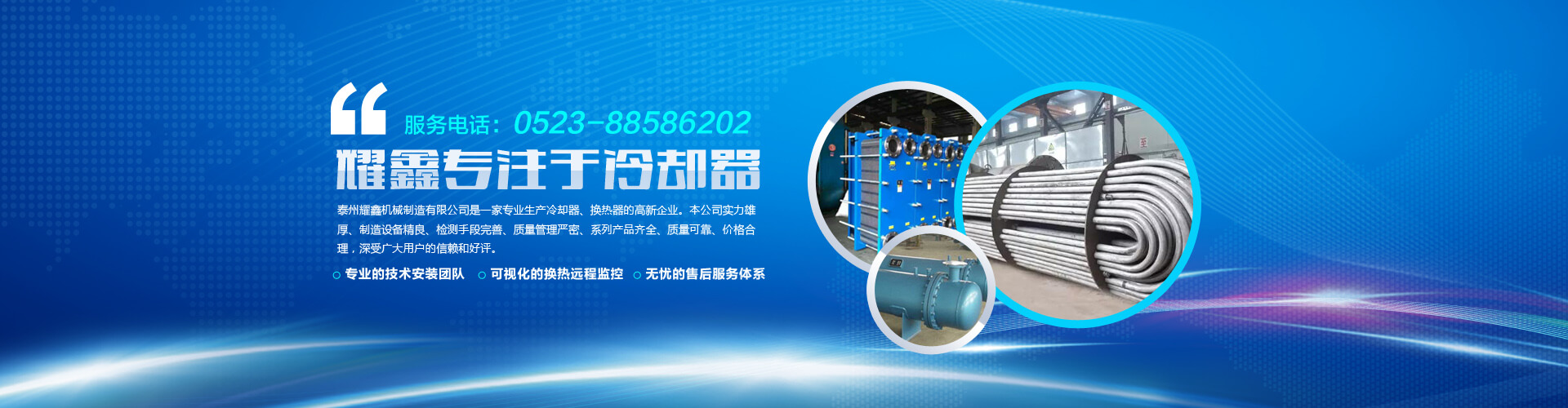 免費(fèi)咨詢方案 +泰州耀鑫機(jī)械制造有限公司座落于風(fēng)景如畫(huà)的江蘇魚(yú)米之鄉(xiāng)--全國(guó)文明城鎮(zhèn)婁莊鎮(zhèn),是一家專業(yè)生產(chǎn)風(fēng)冷卻器、列管式冷卻器、板式冷卻器的企業(yè)。本公司實(shí)力雄厚、制造設(shè)備精良、檢測(cè)手段完善、質(zhì)量管理嚴(yán)密、系列產(chǎn)品齊全、質(zhì)量可靠、價(jià)格合理,深受廣大用戶的信賴和好評(píng)。